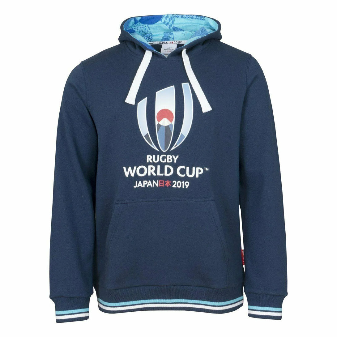 100% Cotton, classic fitting with printed logos, the RWC 2019 Overhead Hoodie Navy is suitable for rugby fans of all sizes, keeping you warm in stands or at the side of the pitch when cheering on your Nation!