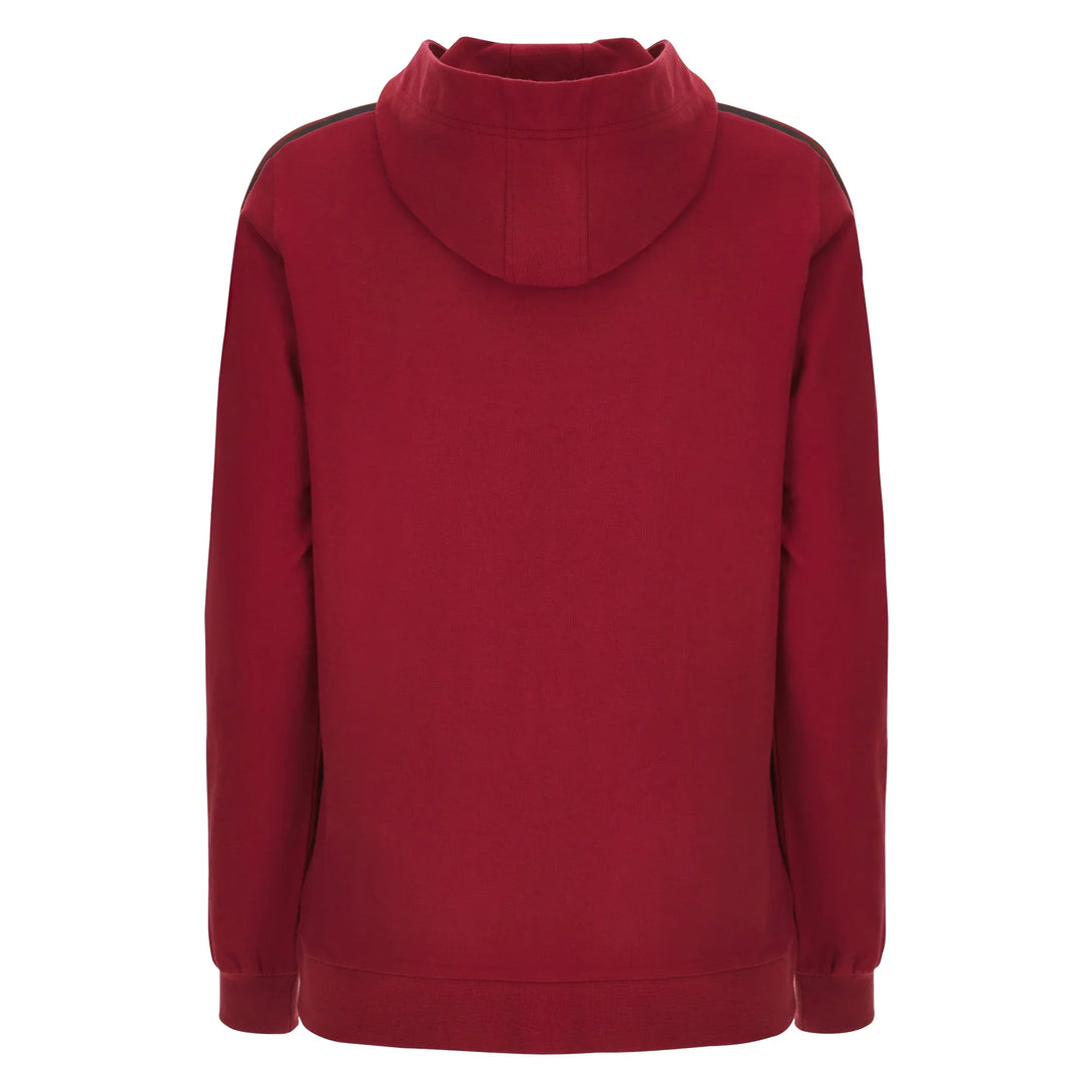 2023/24 travel range - Cardinal red hoody with black and red taping down the sleeves, zipped pockets and embroidered Welsh Rugby crest (PLEASE NOTE: sizes 8-12 do not have drawstrings due to EU regulations)