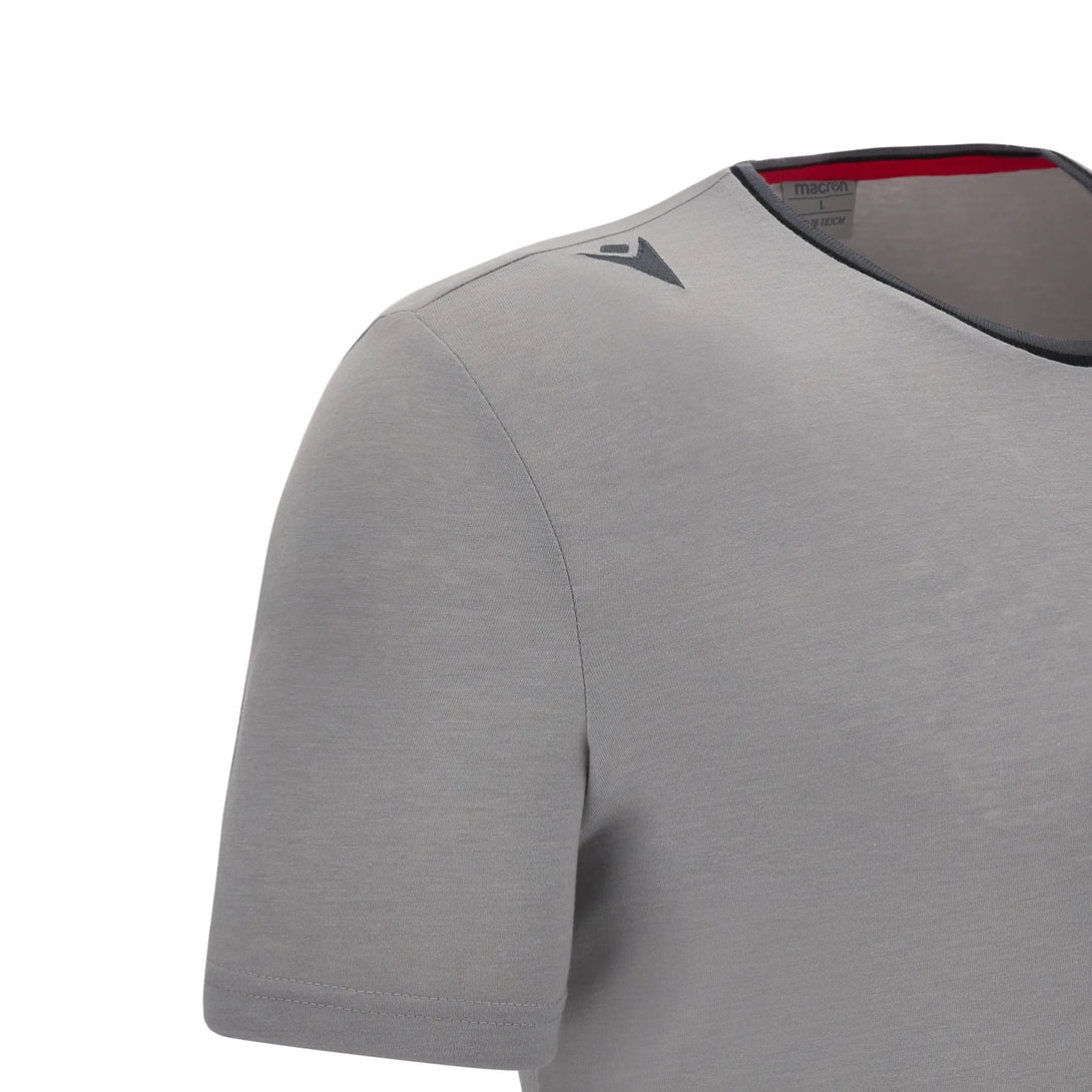 Grey polycotton tee with charcoal piping and embroidered Welsh Rugby crest.