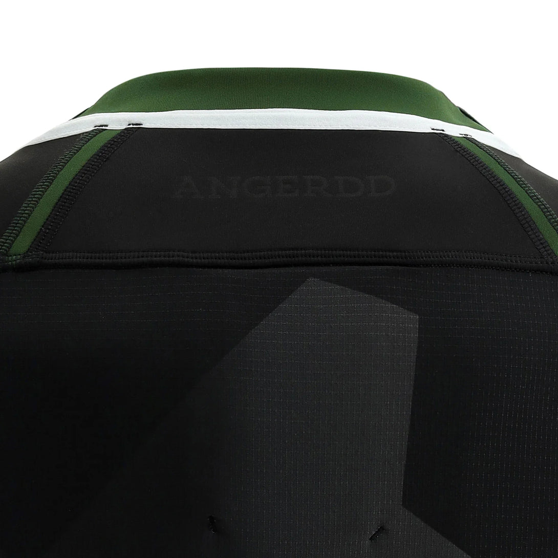 The Official Welsh Rugby Away Jersey for the 2021/23 season. Black and grey shirt with graphic print across the torso and dark green and white accents on the collars and cuffs and the Welsh Rugby Crest embroidered over the heart. This shirt is standard fit, with short sleeves and produced using polyester making it perfect for cheering on the squad from the stands.